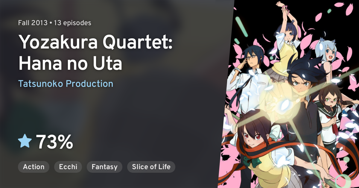 Check spelling or type a new query. We did not find results for: Yozakura quartet is a japanese manga series created by suzuhito yasuda that began publishing by kodansha in 2006, and was then published in the us by del rey in 2008. Yozakura quartet hana no uta. Maybe you would like to learn more about one of these? The anime adaptation aired from october 2 to december 18, 2008 in japan and.